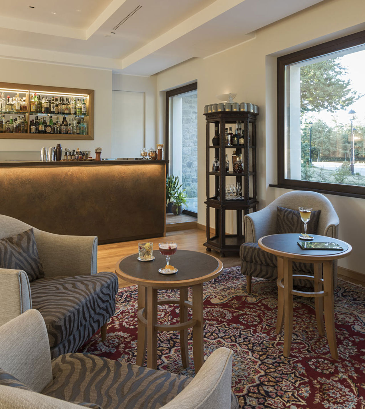 At any time of day, Etrusco Bar offers a refined and relaxing atmosphere in the heart of Borgo's living area, with a charming veranda surrounded by large windows where you can enjoy the greenery of the garden and gaze out over the nearby Tuscan countryside, where the sun sets spectacularly.