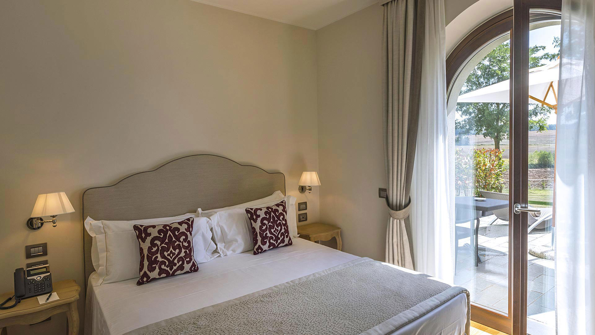 The two Comfort rooms (19 sq. m.) are well-appointed, stylishly refined and welcoming, while conveying a sense of intimacy. They are located in the Casale della Torre building on the ground floor and first floor. Guests will appreciate the southerly view toward the monti Volsini chain of hills around Lake Bolsena.