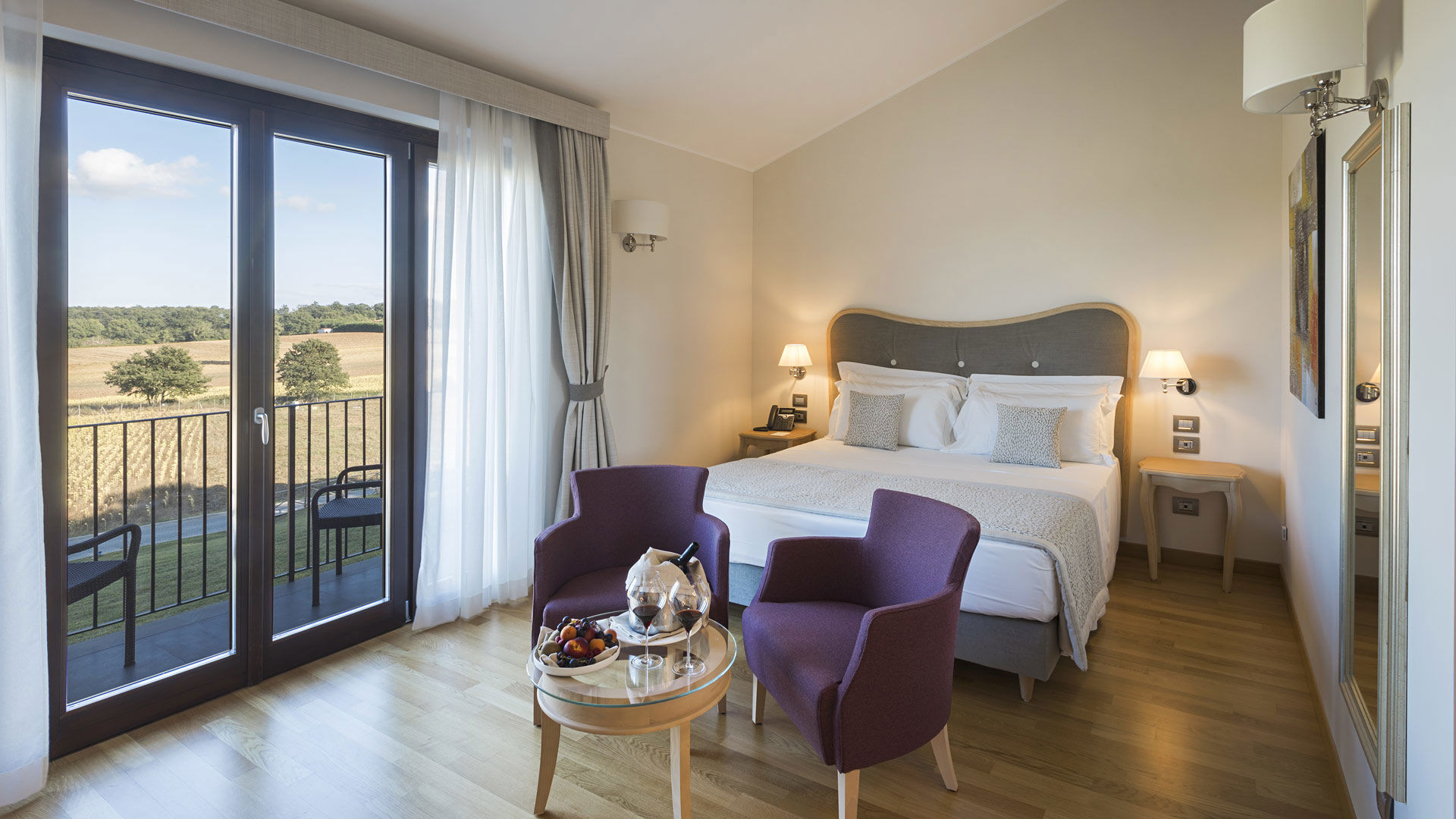 The two Superior rooms with balconies are located on the first floor of Casale della Scala. These rooms open onto a small furnished balcony with a splendid view of the countryside. Well exposed to daylight, the rooms face east.
