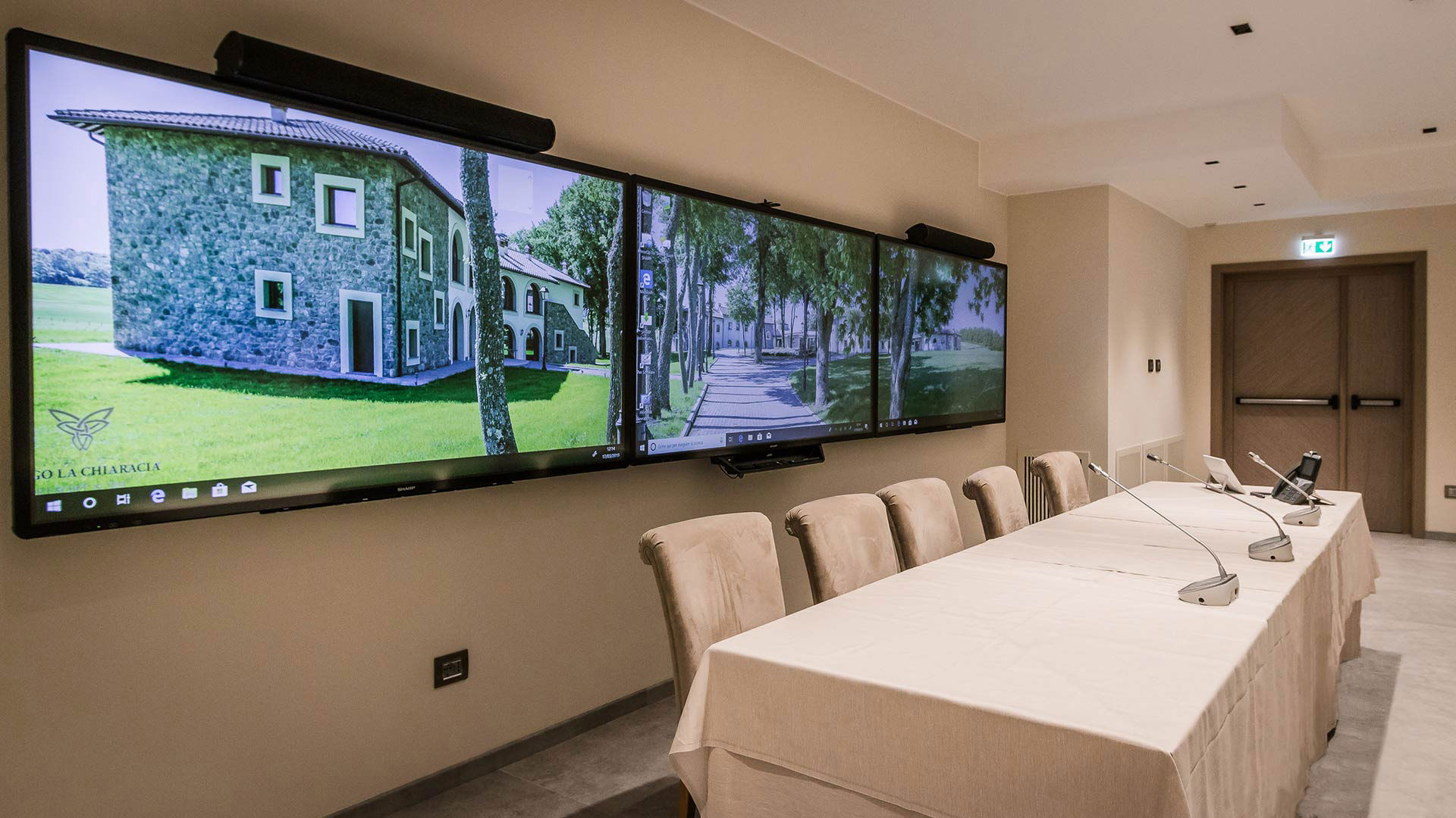 Nell’era delle Smart Technologies ha preso forma l’Area Meeting di Borgo La Chiaracia, qui i concetti di collaboration, virtualizzazione, comunicazione visiva e videocomunicazione sono divenuti realtà tangibile.