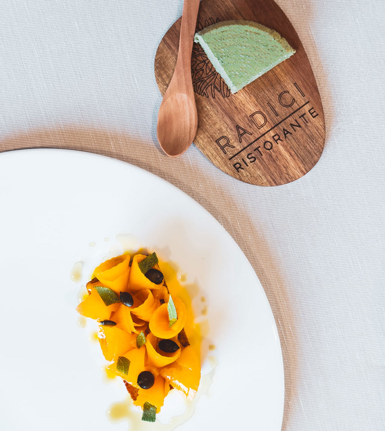 Radici Ristorante è sinonimo di lusso ma anche di viaggio. Un viaggio attraverso gli ingredienti dell’Umbria, magistralmente orchestrati dalle mani dello Chef Gabriel Collazzo.